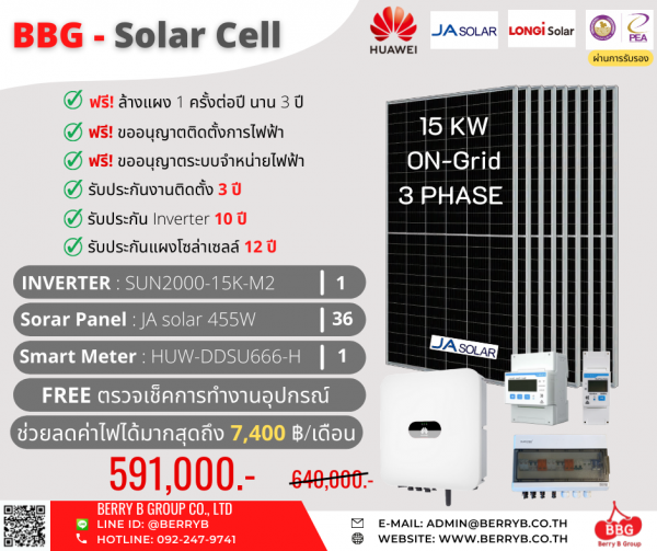 ระบบโซล่าเซลล์รูฟท็อป เซตออนกริด- Set on grid 15 KW มารตฐาน มีรับประกัน