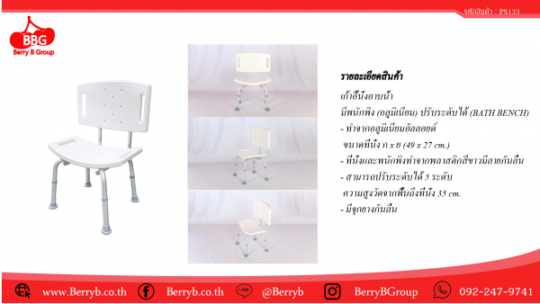 มีพนักพิง (อลูมิเนียม) ปรับระดับได้ (BATH BENCH)