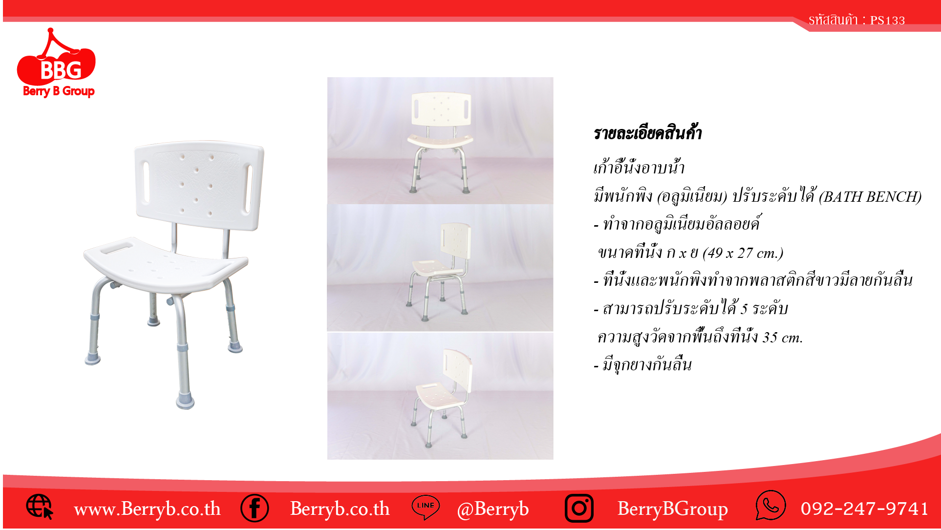 เก้าอี้นั่งอาบน้ำมีพนักพิง (อลูมิเนียม) ปรับระดับได้