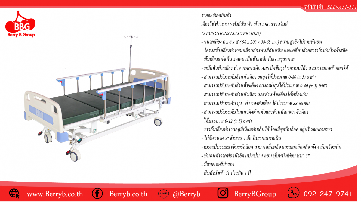 เตียงไฟฟ้า แบบ 5 ฟังก์ชั่น หัว-ท้าย ABC ราวสไลด์ (3 FUNCTIONS ELECTRIC BED)(SLD-A51-111)