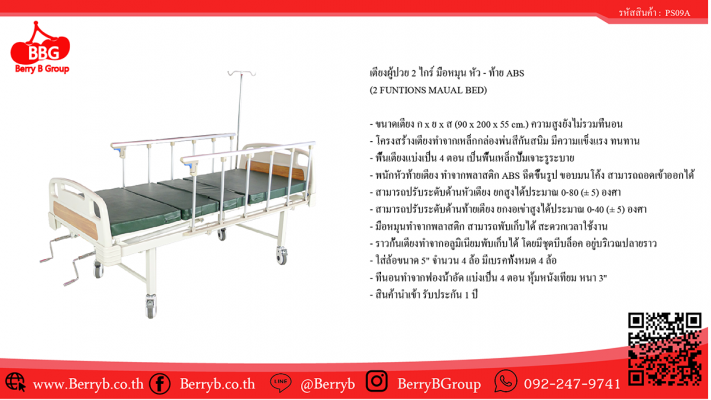 เตียง 2 ไกร์ มือหมุน หัว-ท้าย ABS (2 FUNCTIONS MANUAL BED)(PS09-A)